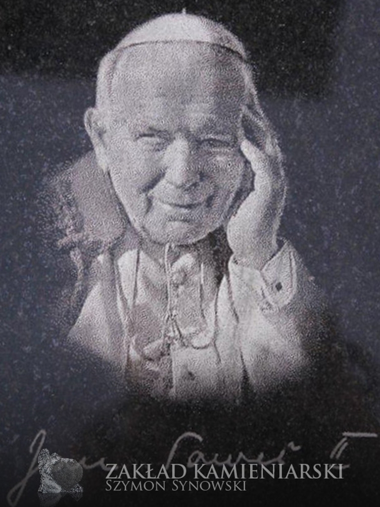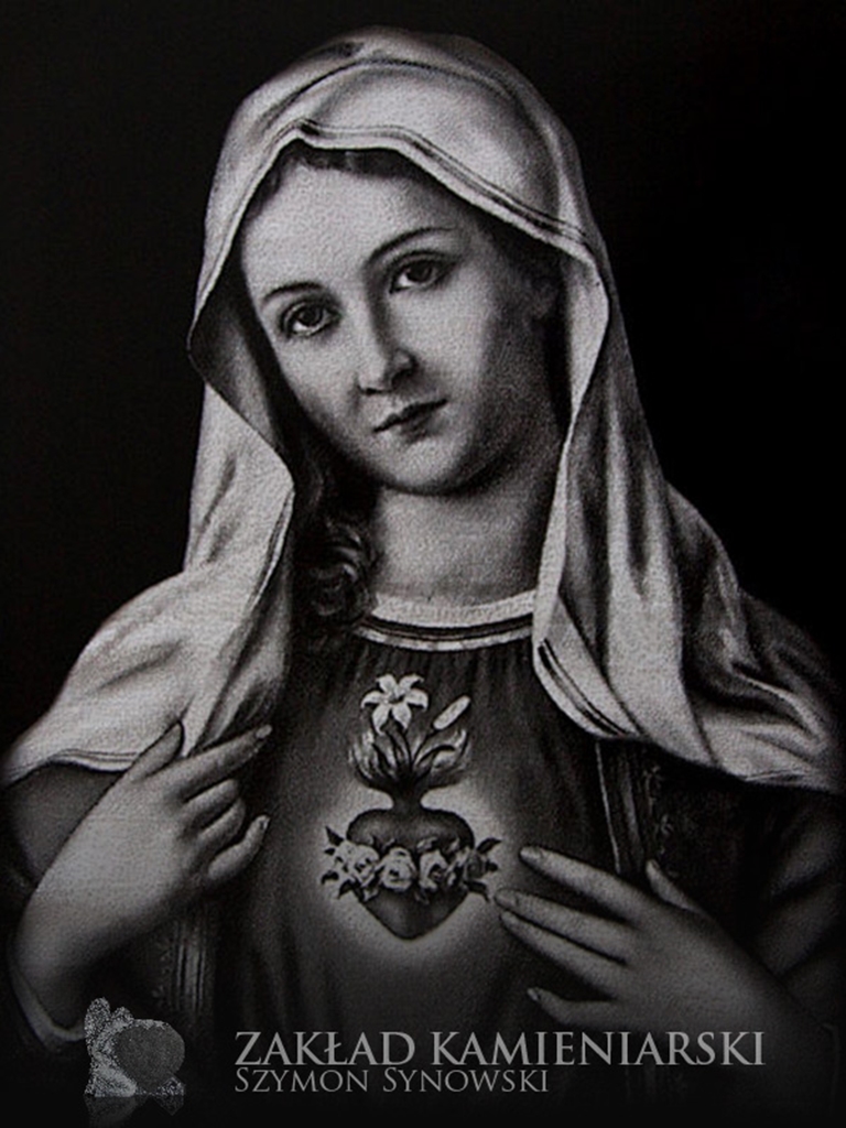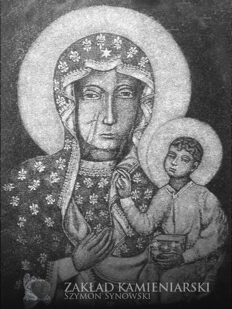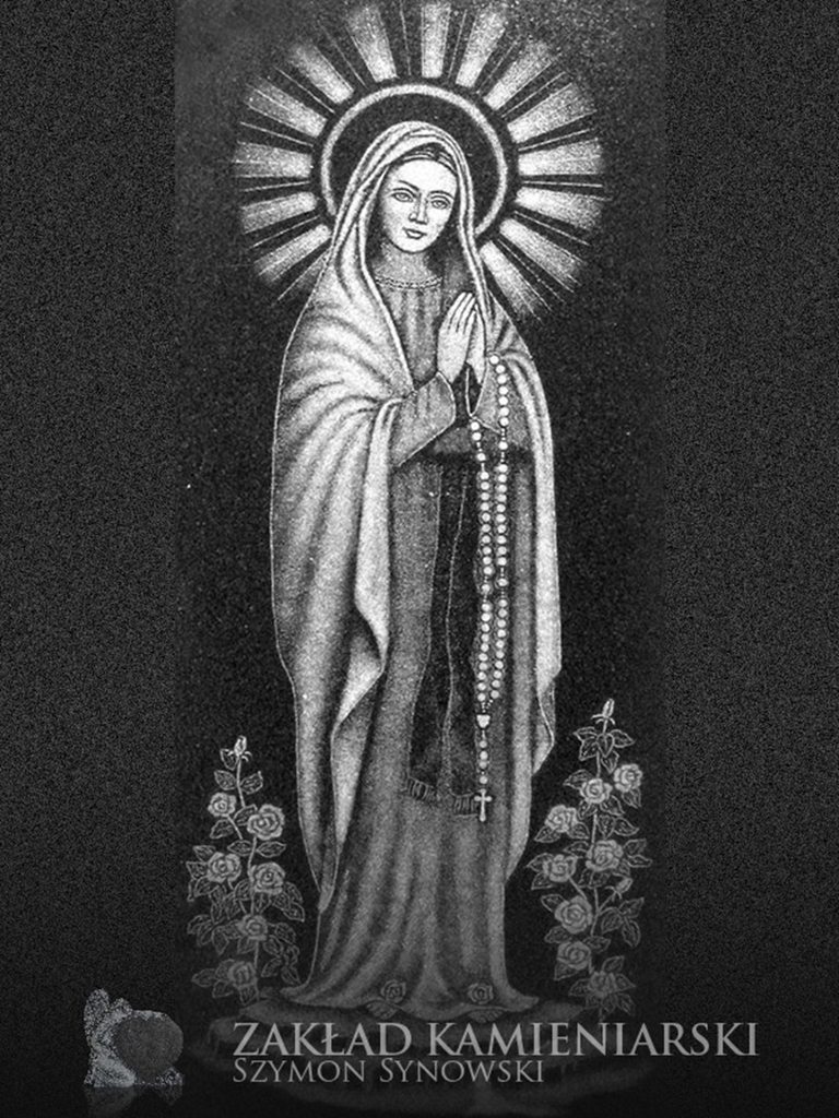 To inaczej wizerunki grawerowane w kamieniu nagrobkowym, które – podobnie jak fotografie porcelanowe – nadają nagrobkom bardziej osobisty charakter. Nasi klienci mogą zlecić wygrawerowanie wizerunku osoby zmarłej, ale też świętego lub innej osoby. Dysponujemy zestawem wzorów wizerunków Jezusa, Marii, św. Jana Pawła II itd. do wyboru.